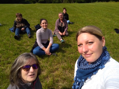 Puis nous avons terminé cette balade en pleine nature par une séance de relaxation couchée dans un près avec le soleil, les bruits de la nature qui nous ont beaucoup aidés à nous détendre. Après 1h30 chacune de nous à pu exprimer son ressenti. Toutes les participantes se sentaient calmes, détendues et apaisées. Toutes ont manifesté l'envie de renouveler l'expérience."