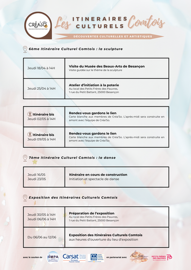 Découvrez ci-dessous le programme des Itinéraires Culturels Comtois concocté par l'équipe de Créa'So :
